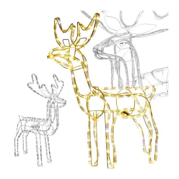 Varázsold ünnepivé a kertedet ezzel a látványos, 216 LED-es rénszarvassal! A meleg fényű sárga és kék villogó LED-ek elegáns, mégis játékos ragyogást adnak, ami garantáltan odavonzza a tekinteteket. A mozgó fej élethű hatást kelt, így a dekoráció szinte életre kel az esti fényben.