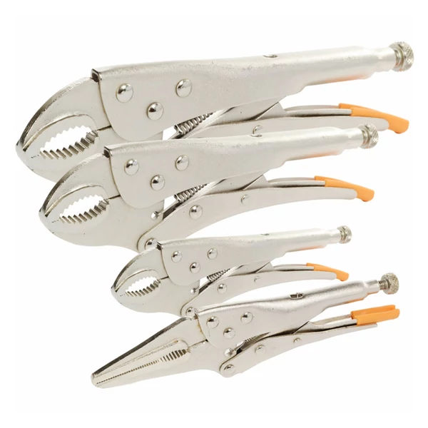 Professzionális, önzáró rögzítőfogó készlet, amely nélkülözhetetlen eszköz minden vízvezeték-szerelő, hegesztő, autószerelő, gépész és lakatos számára. A készletben négy különböző méretű (125 mm, 170 mm, 190 mm, 250 mm) Morse-fogó található, amelyek lehetővé teszik a különféle anyagok pontos és erőteljes rögzítését.
