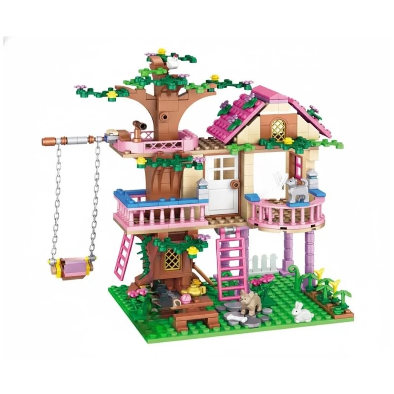Építsd meg saját titkos menedékedet ezzel az 504 darabos faház építőkészlettel! Az "Erdei Barátság Ház" rózsaszín, zöld és barna elemeivel egy hangulatos, több szintes faházat eredményez, hintával, teleszkóppal, lépcsőkkel és kiegészítő állatfigurákkal. A készlet fejleszti a kreativitást és a kézügyességet, tökéletes választás születésnapi vagy karácsonyi ajándéknak.