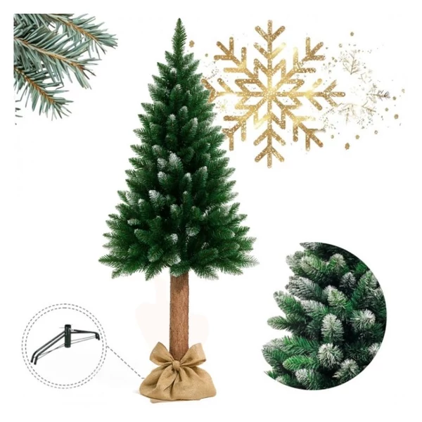 Műfenyő valódi fenyőtörzsön, havas hatású, 180 cm – CHO09