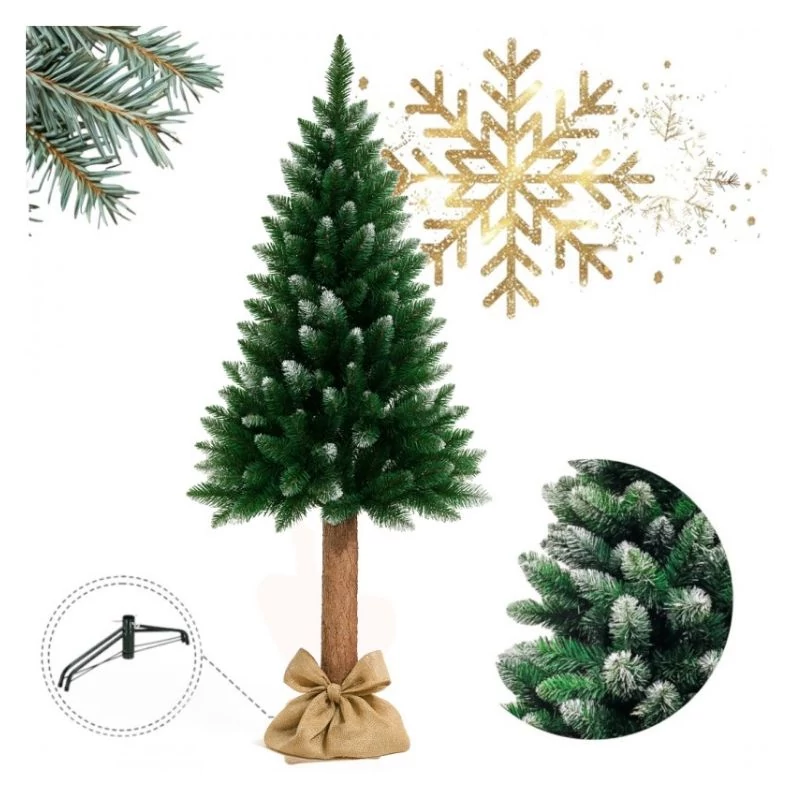 Kiváló minőségű, élethű megjelenésű karácsonyfa, amely természetes fenyőtörzsre épül. A sűrű, enyhén havas ágak vastag, erős drótra készültek, és a legjobb minőségű PVC-ből készült levelekkel díszítettek, így a fa elegáns és tartós marad hosszú éveken át. A természetes fenyőtörzs kellemes illatot áraszt, és különleges, természetes hangulatot kölcsönöz a térnek.