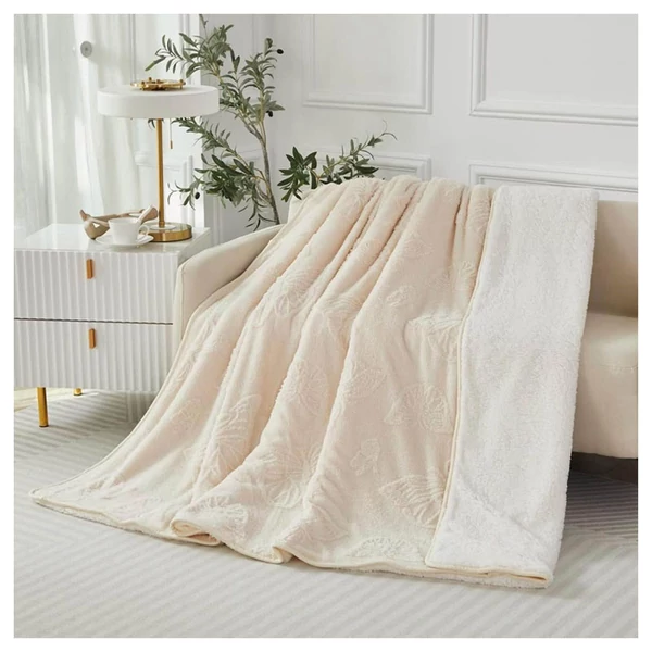 Violet 2 rétegű pillangó mintás ágytakaró/pléd 150x200 cm - Krémszínű HD150200-5